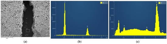 XPS was performed using a VersaProbe III—PHI system (Physical Electronics, Chanhassen, MN, USA) operating under ultra-high vacuum (UHV, 2 × 10−10 Torr during analysis). Samples were irradiated with a focused, monochromatic Al Kα X-ray source (1486.6 eV) at 50 W and 15 kV, with a beam diameter of 200 μm. Emitted photoelectrons were collected by a Spherical Capacitor Analyzer (SCA), and surface charging was compensated using a Dual Beam Charge Neutralization system, which combines a conventional electron flood gun with a low-energy argon ion beam. Survey spectra were recorded to determine the surface elemental composition, with data acquired at a pass energy of 224 eV, a step size of 0.8 eV, and a dwell time of 20 ms, and the core level binding energies of the different peaks were normalized by setting the binding energy for the C1s at 284.8 eV. The accuracy of this peak position was estimated as ±(0.2–0.3) eV [].