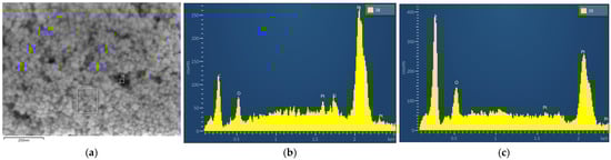 In XPS, the detected electrons originate from the top 5–10 nm of the sample surface. Peak assignments were performed with reference to established databases, listed in the reference section [,,,,,,,,]. The detection limit of the technique is typically in the range of 0.1–1.0 atomic %.