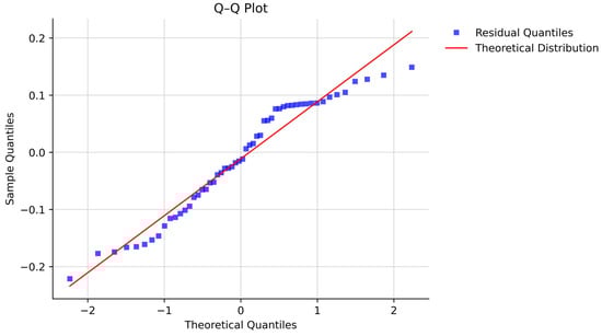 A standard curve was initially constructed across a broad range of ricin concentrations, from 0.488 ng/mL to 500 ng/mL. The data were initially modelled using a 4-parameter logistic (4-PL) non-linear regression model (Figure 3A) [53,54]. To simplify the routine screening procedure and overcome the dependency on specialised software and expertise required for non-linear fitting, a linear least-squares approach was subsequently adopted. The working range was optimised by selecting only the data points within the steep, linear portion of the logistic curve. The final calibration curve was then modelled using a linear weighted least squares approach with 1/x weighting (Figure 3B). The validated linear range, spanning from 3.9 ng/mL to 125 ng/mL, was employed for all subsequent parameter validations. The suitability of this linear model is further supported by the normal distribution of residuals (Figure 4).