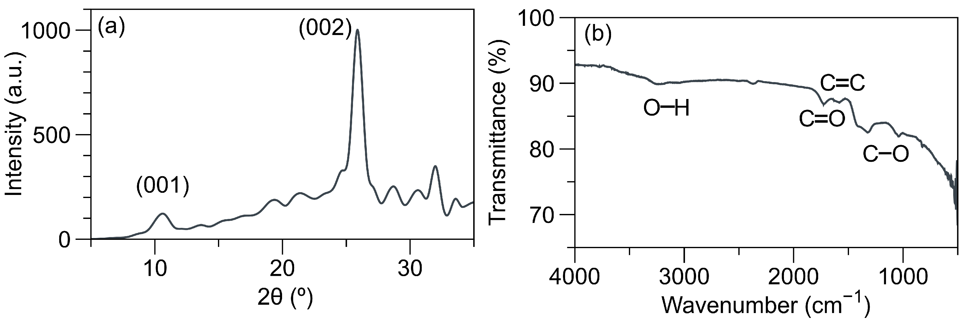 24]. Such structural features are beneficial for electronic applications since they provide pathways for efficient charge delocalization while maintaining abundant edge sites decorated with functional groups (–OH, –COOH, –NH