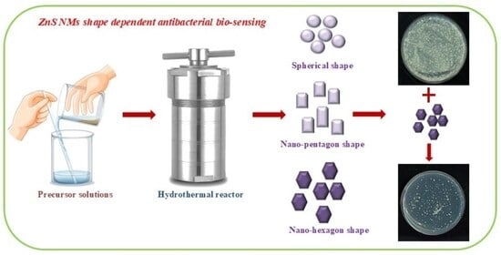 - Sabaghi, V.; Davar, F.; Fereshteh, Z. ZnS nanoparticles prepared via simple reflux and hydrothermal method: Optical and photocatalytic properties. Ceram. Inter. 2018, 44, 7545–7556. [Google Scholar] [CrossRef]