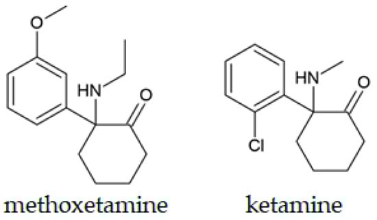 - Zawilska, J.B. Methoxetamine–a Novel Recreational Drug with Potent Hallucinogenic Properties. Toxicol. Lett. 2014, 230, 402–407. [Google Scholar] [CrossRef]