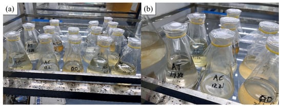 The Alexandrium tamarense (strain CCMA-260) was cultured in 2 L conical flasks filled with 1.5 L of f/2-enriched seawater medium (Figure 1). The culture conditions were maintained in a photoperiodic growth chamber (Laifu: PGX-330 A-3 H) located in Ningbo, China, under a 12 h light:12 h dark cycle illuminated by cool white fluorescent lamps providing approximately 3500 lux of light intensity. The temperature within the chamber was kept at 24 ± 0.5 degrees Celsius. The strain of Alexandrium tamarense used for the study was obtained from the Culture for Collections of Marine Bacteria and Phytoplankton (CCMBP) of Xiamen University. Cell enumeration of Alexandrium tamarense was conducted using a hemocytometer with a 0.5 mL chamber capacity, manufactured by Henan Taiheng Plastic Industry Co., Ltd., Xinxiang, China. The counting process was performed under a 5× magnification microscope (Nikon: E200 MV) located in Nanjing, China.
