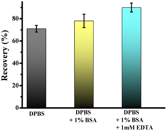 Test of two different priming and separation buffers: DPBS, DPBS + 1% BSA, and DPBS + 1% BSA + 1 mM EDTA.