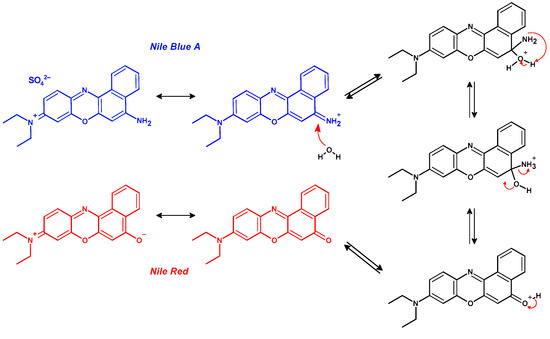 Scheme of hydrolytic transformation of Nile Blue A to Nile Red.