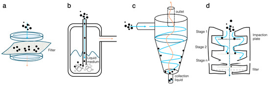 - Mainelis, G. Bioaerosol Sampling: Classical Approaches, Advances, and Perspectives. Aerosol Sci. Technol. 2020, 54, 496–519. [Google Scholar] [CrossRef] [PubMed]