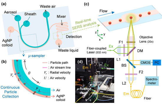 - Choi, J.; Lee, J.; Jung, J.H. Fully Integrated Optofluidic SERS Platform for Real-Time and Continuous Characterization of Airborne Microorganisms. Biosens. Bioelectron. 2020, 169, 112611. [Google Scholar] [CrossRef]