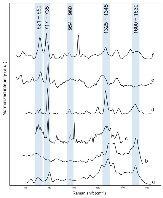 - Premasiri, W.R.; Lee, J.C.; Sauer-Budge, A.; Théberge, R.; Costello, C.E.; Ziegler, L.D. The Biochemical Origins of the Surface-Enhanced Raman Spectra of Bacteria: A Metabolomics Profiling by SERS. Anal. Bioanal. Chem. 2016, 408, 4631–4647. [Google Scholar] [CrossRef]