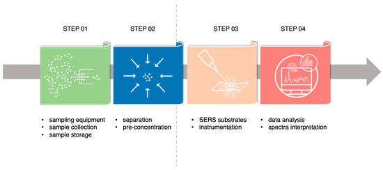 - Zong, C.; Xu, M.; Xu, L.-J.; Wei, T.; Ma, X.; Zheng, X.-S.; Hu, R.; Ren, B. Surface-Enhanced Raman Spectroscopy for Bioanalysis: Reliability and Challenges. Chem. Rev. 2018, 118, 4946–4980. [Google Scholar] [CrossRef] [PubMed]
