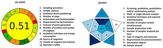 - Manousi, N.; Wojnowski, W.; Plotka-Wasylka, J.; Samanidou, V. Blue applicability grade index (BAGI) and software: A new tool for the evaluation of method practicability. Green Chem. 2023, 25, 7598–7604. [Google Scholar] [CrossRef]