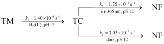 On the other hand, as outlined above, the degradation of TC in the absence of light was estimated. The results for these three reactions are synthesized in Scheme 1: