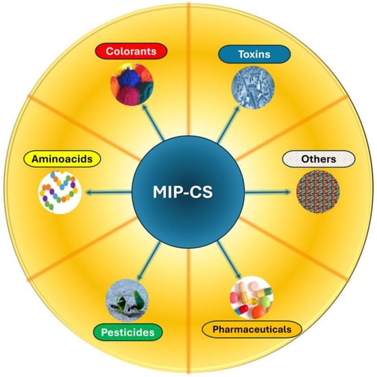 MIPs have found widespread applications in a variety of sensing platforms, including electrochemical sensors [27,61] and optical chemosensors [62,63]. They are particularly attractive for use in sensor technology due to their high stability, low cost, and the ease with which they can be integrated into different sensor devices. Furthermore, MIPs are versatile in that they can be designed for both selective detection and sample enrichment, allowing for the isolation and identification of trace levels of analytes in complex samples. In recent years, the development of MIPs has extended beyond traditional applications to include more advanced fields such as drug delivery systems [64,65], tissue engineering [66], and diagnostic assays [67]. The continuous evolution of MIP-based technologies holds great promise for future applications in both fundamental research and industrial use, providing innovative solutions for molecular recognition and analysis.
