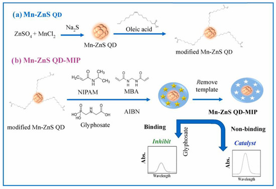 - Sawetwong, P.; Chairam, S.; Jarujamrus, P.; Amatatongchai, M. Enhanced selectivity and sensitivity for colorimetric determination of glyphosate using Mn–ZnS quantum dot embedded molecularly imprinted polymers combined with a 3D-microfluidic paper-based analytical device. Talanta 2021, 225, 122077. [Google Scholar] [CrossRef]