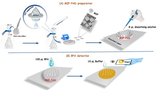 - El Hani, O.; Karrat, A.; Digua, K.; Amine, A. Advanced molecularly imprinted polymer-based paper analytical device for selective and sensitive detection of Bisphenol-A in water samples. Microchem. J. 2023, 184, 108157. [Google Scholar] [CrossRef]