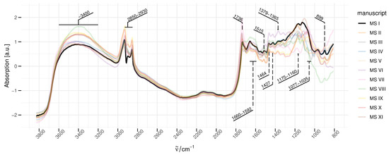 3.2. Evaluation of DRIFTS as Fingerprinting Method for Palm-Leaf Manuscripts