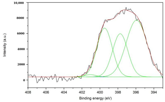 Figure 8) is only significantly present in the XPS spectrum of the plasma-treated sample. This region has been fitted with four peaks at 395.9 eV, 397.7 eV and 399.5 eV, and 401 eV corresponding to N in N-Zn bonds [