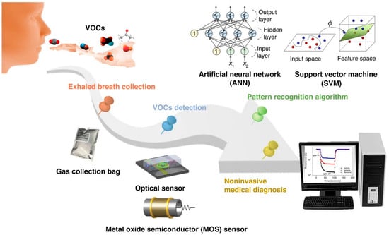 Schematic diagram of non-invasive breath detection via the e-nose system (reprinted with permission from Ref. []).