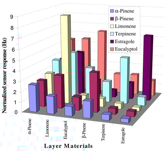 - Iqbal, N.; Mustafa, G.; Rehman, A.; Biedermann, A.; Najafi, B.; Lieberzeit, P.A.; Dickert, F.L. Qcm-Arrays for Sensing Terpenes in Fresh and Dried Herbs Via Bio-Mimetic Mip Layers. Sensors 2010, 10, 6361–6376. [Google Scholar] [CrossRef]