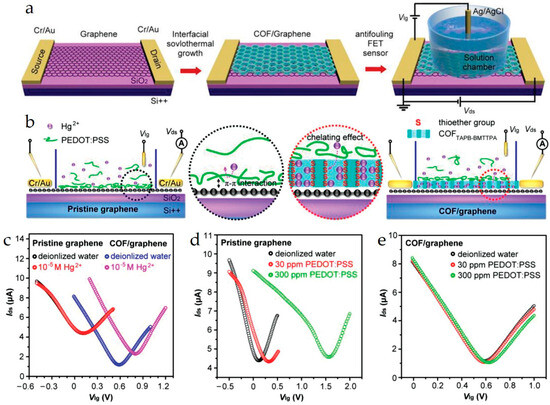- Yang, L.; Jin, Y.; Wang, X.; Yu, B.; Chen, R.; Zhang, C.; Zhao, Y.; Yu, Y.; Liu, Y.; Wei, D. Antifouling Field-Effect Transistor Sensing Interface Based on Covalent Organic Frameworks. Adv. Electron. Mater. 2020, 6, 1901169. [Google Scholar] [CrossRef]