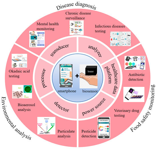 With the rapid development of mobile health (mHealth) technology, the combination of smartphones and biosensors provides a revolutionary solution for disease monitoring. By integrating optical, electrochemical, microfluidic, and artificial intelligence (AI) technologies, smartphone platforms have enabled the detection and analysis of multimodal biomarkers. Each perspective will be presented later in the article [32,67,68,69].