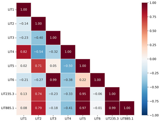k-means followed by Pearson correlation analysis based on the cluster distribution of each sample was carried out as detailed in Figure 10. A strong positive correlation was consistently found between the archaeological samples and the modern yellowish shells. Specifically, high correlation coefficients were observed between both LIT235.3 and LIT885.1 compared to LIT5 and LIT2. This indicates that the archaeological shells grouped very similarly to these specific modern yellowish shells using k-means clustering. Given that LIT2 and LIT5 exhibit a yellowish coloration (Figure 1), this spectral similarity suggests that the archaeological shells share underlying chemical characteristics with these modern yellow samples.