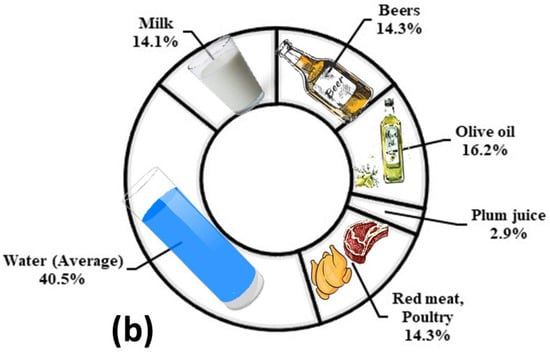 Performance of e-noses for food products: (a) performance percentages of e-nose and (b) e-tongue for food products.