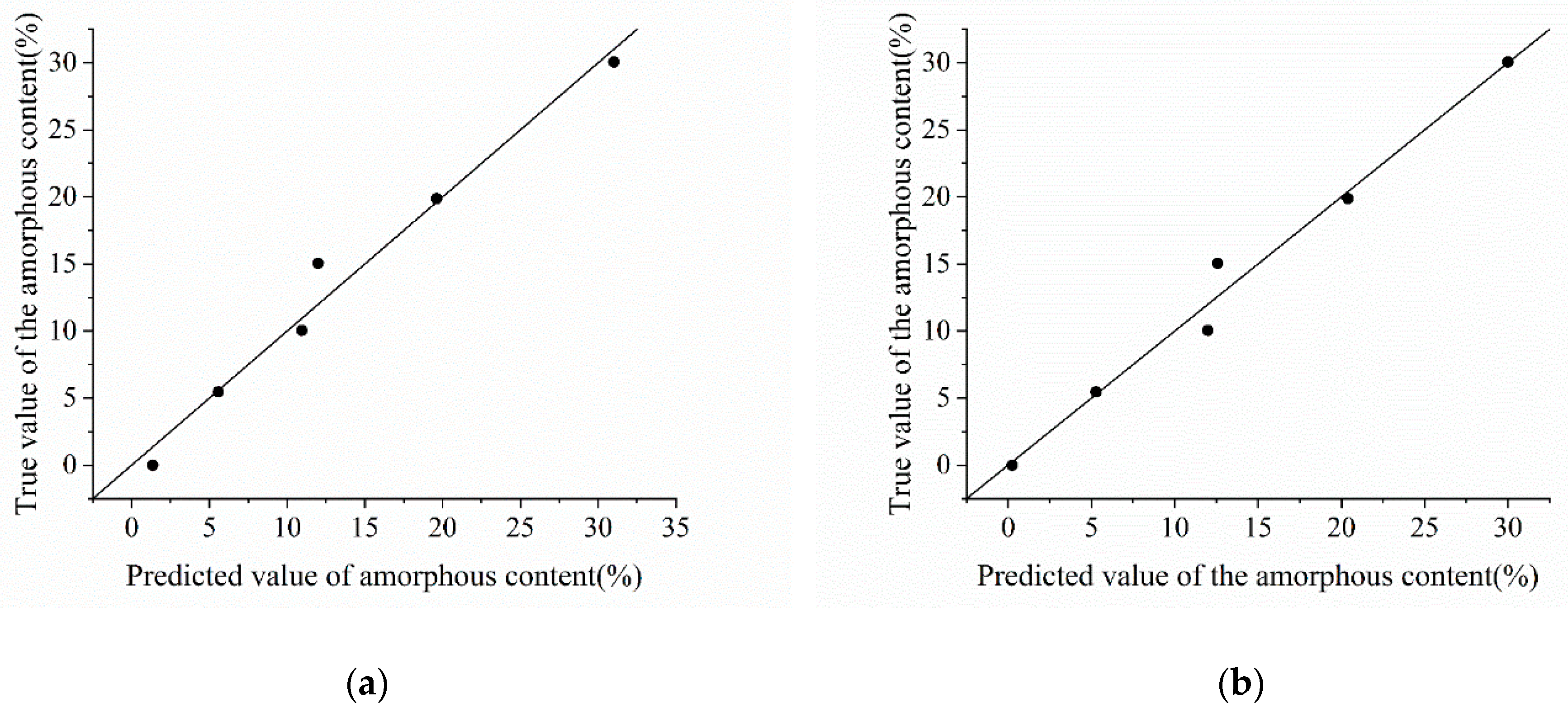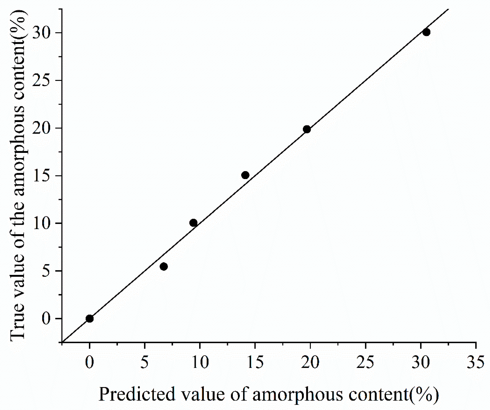 The predicted value of the amorphous content for two types of samples based on PXRD-M1 model.