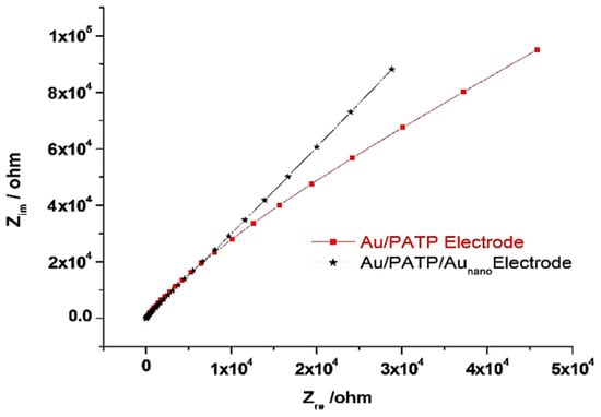 Electrochemical sensors, considered the most widely applied sensors, rely on the electron flow generated or consumed during a (bio)chemical reaction to yield a measurable electrochemical signal. Electrochemical nanosensors rely on the interaction between the nanomaterial, the biological element, and the target analyte, which consumes or generates charged species, ions, or electrons, with the analytical signal being quantified as the current intensity, voltage, or impedance []. Biorecognition elements such as enzymes, nucleic acids, and microorganisms can be associated with electrochemical transducers, imparting specificity to the analytical response [,].