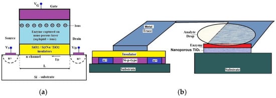 As mentioned above, one direction of study of this review concerns technologies for immobilizing bioreceptors by capturing them on nanoporous intermediate layers [30,31,32]. Few particular methods to immobilize enzymatic membranes for Enzyme-FET biosensors [33,34], even paper-based devices [34], still exist.