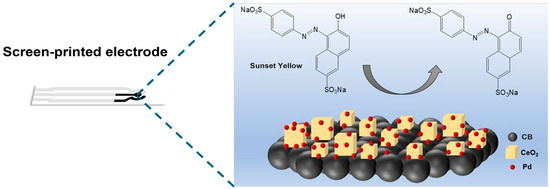 Schematic of the Pd-CeO2/CB composite-based Sunset Yellow electrochemical sensor.