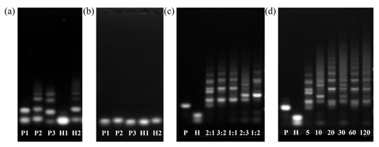 | P2 | 5′-TCGGACTCGTGTGAGTAGGTTCTAATCTTGGATTGTCGG TAGGGCGTAGATAAGAGTCTG-3′ |