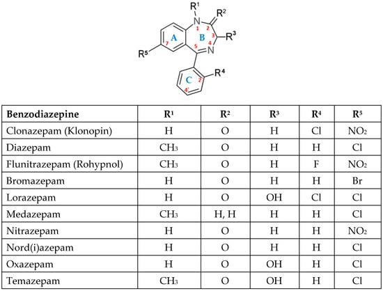 - Persona, K.; Madej, K.; Knihnicki, P.; Piekoszewski, W. Analytical Methodologies for the Determination of Benzodiazepines in Biological Samples. J. Pharm. Biomed. Anal. 2015, 113, 239–264. [Google Scholar] [CrossRef]