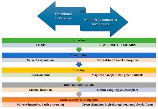 Towards sustainable and high-throughput preparation: The ongoing direction toward greener and more efficient analytical chemistry has accelerated the development of sustainable sorbents, miniaturized extraction systems, and reusable platforms. Recent innovations include the application of nanostructured materials, bio-based polymers, and molecularly imprinted polymers (MIPs), which offer enhanced selectivity, high sorption capacity, and operational reusability, key features for sustainable GC-MS workflows in environmental analysis [,].