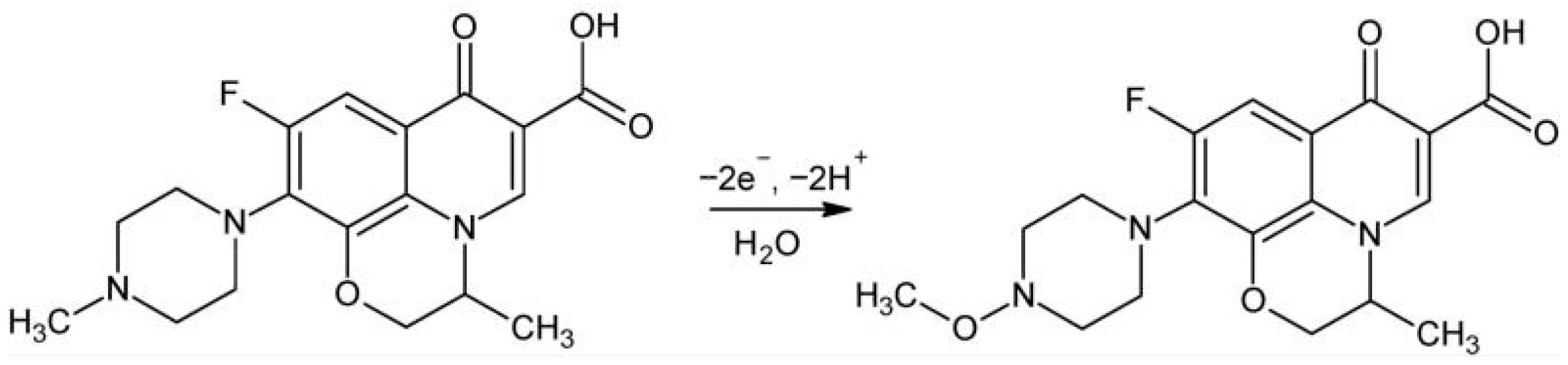 - Radi, A.; El-Sherif, Z. Determination of Levofloxacin in Human Urine by Adsorptive Square-Wave Anodic Stripping Voltammetry on a Glassy Carbon Electrode. Talanta 2002, 58, 319–324. [Google Scholar] [CrossRef]