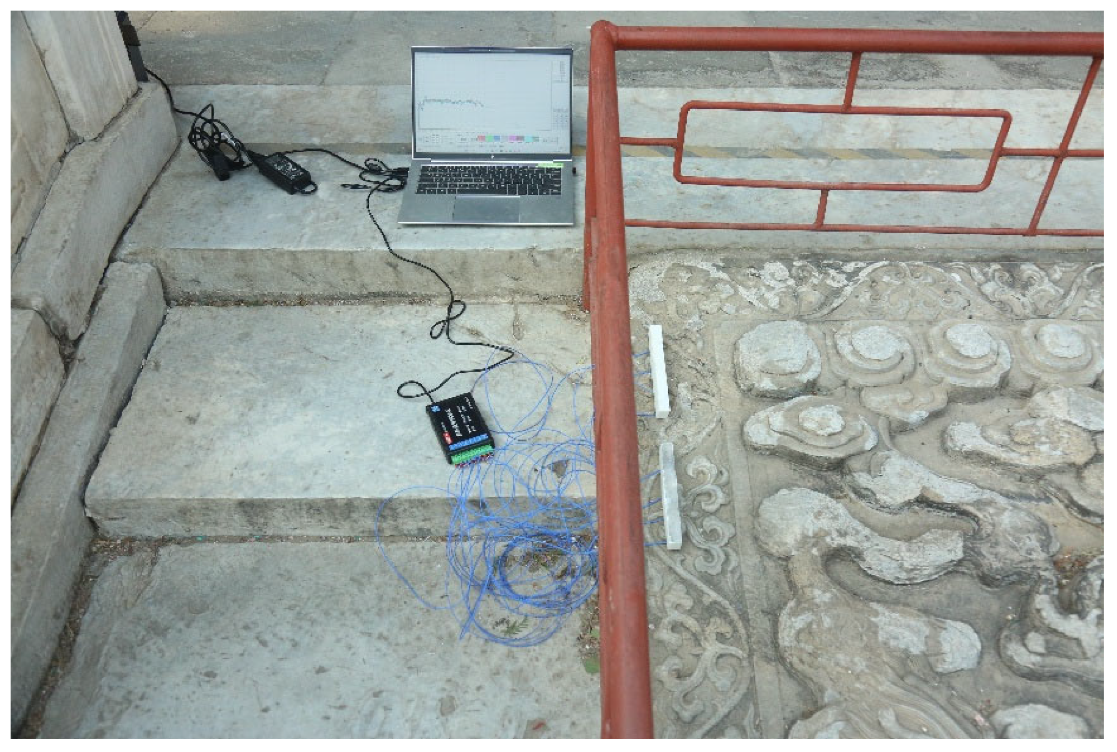 - Wang, F.; Fu, Y.; Li, D.; Huang, Y.; Wei, S. Study on the mechanism of the black crust formation on the ancient marble sculptures and the effect of pollution in Beijing area. Heliyon 2022, 8, e10442. [Google Scholar] [CrossRef]
