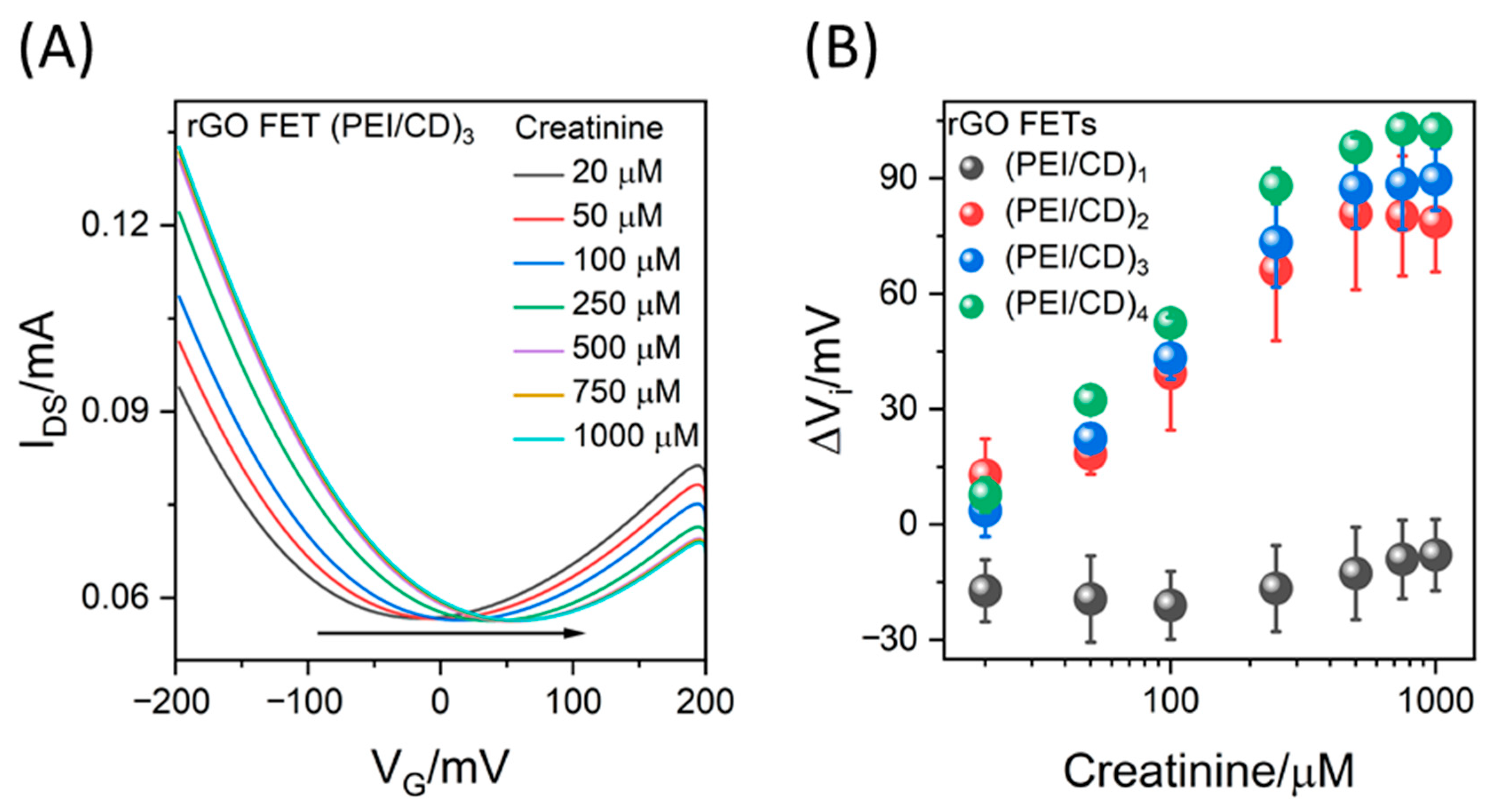 APA StyleCandia, M. L., Piccinini, E., Azzaroni, O., & Marmisollé, W. A. (2026). Creatinine Sensing with Reduced Graphene Oxide-Based Field Effect Transistors. Chemosensors, 14(1), 3. https://doi.org/10.3390/chemosensors14010003