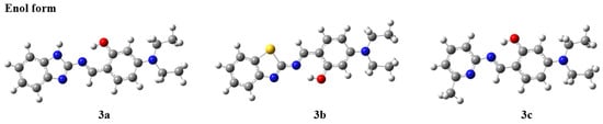 Optimized molecular structures of compounds 3a–3c (enol form).
