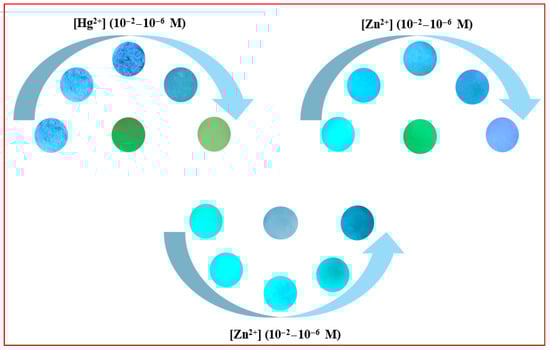 Metal ions play different roles in various fields such as industry, medicine, and ecology [1]. While playing a role, there exists an optimal level of metal ion content in the environment. When there is an imbalance at this level, it may lead to serious pollution and harm [2]. Therefore, the selective and quantitative detection of metals is required [3]. Typically, mercury, as a highly toxic heavy metal pollutant, can be released into the environment through industrial production, polluting soil, water, and food and posing a serious threat to human health [4]. Therefore, it is crucial to develop a reliable and highly sensitive sensor to detect the presence of Zn2+ [5] and mercury ions (Hg2+) [6] in the environment.
