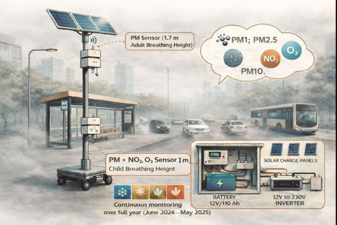 Exposure to air pollution within cities is highly heterogeneous. Conventional regulatory monitoring networks are designed to capture long-term trends and compliance at the city scale, but they often fail to resolve fine-scale variability in transport-related microenvironments such as roadside public transport stops [
