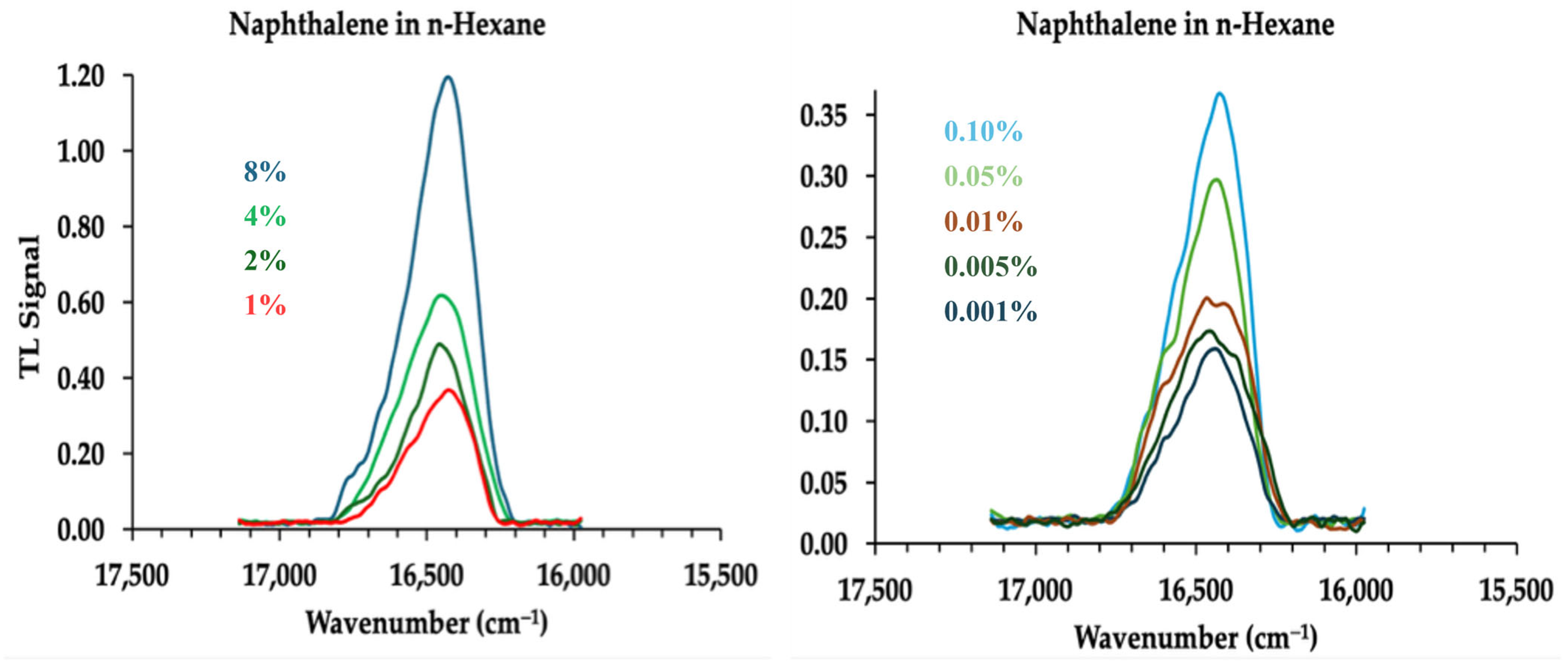- Twarowski, A.J.; Kliger, D.S. Multiphoton Absorption Spectra Using Thermal Blooming II, Two-photon Spectrum of Benzene. Chem. Phys. 1977, 20, 259–264. [Google Scholar] [CrossRef]