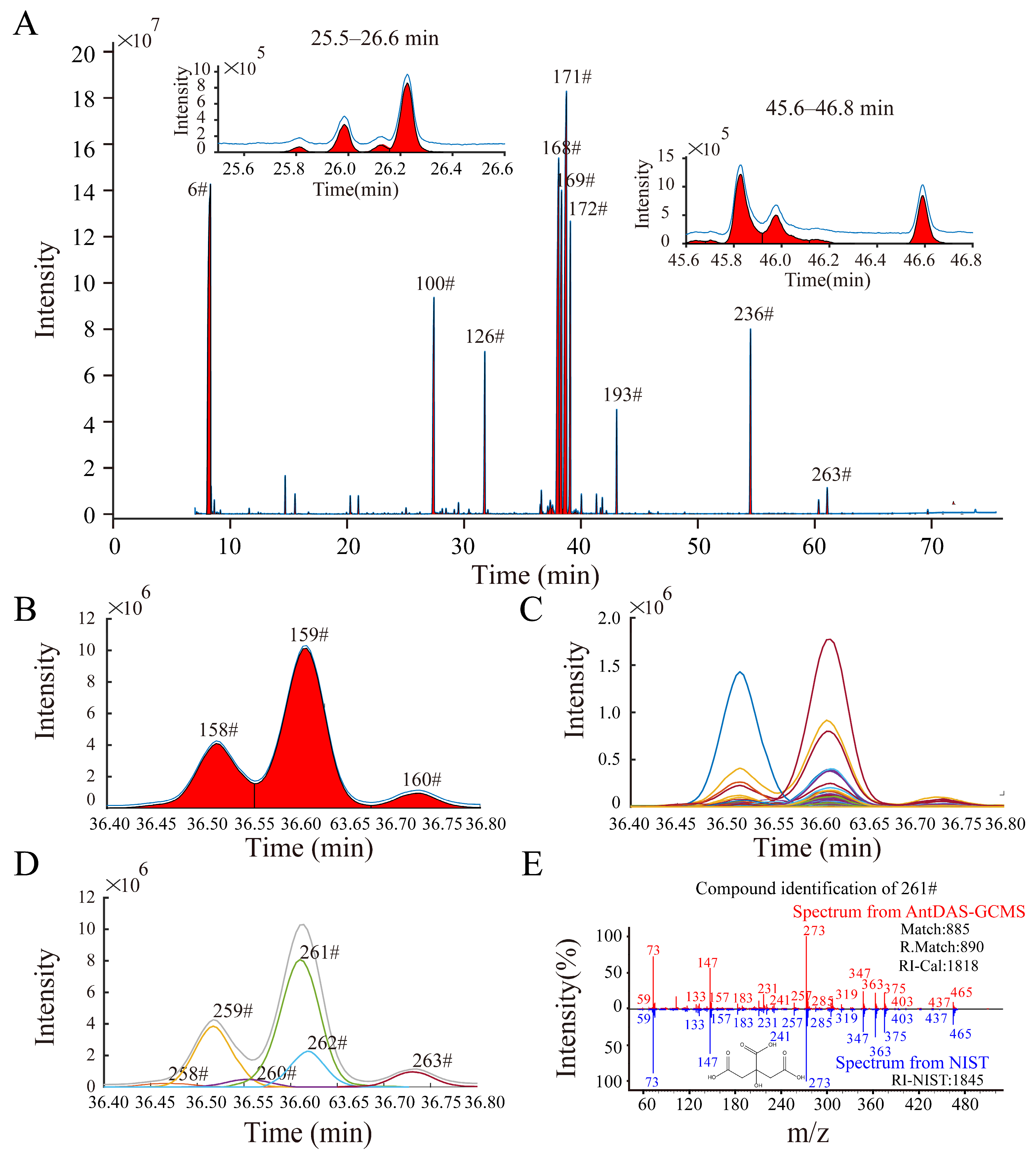 - Ma, G.M.; Wang, J.N.; Wang, X.C.; Ma, F.L.; Wang, W.X.; Li, S.A.-O.; Liu, P.P.; Lv, Y.; Yu, Y.A.-O.; Fu, H.A.-O.; et al. AntDAS-GCMS: A New Comprehensive Data Analysis Platform for GC-MS-Based Untargeted Metabolomics with the Advantage of Addressing the Time Shift Problem. Anal. Chem. 2024, 96, 9379–9389. [Google Scholar] [CrossRef]