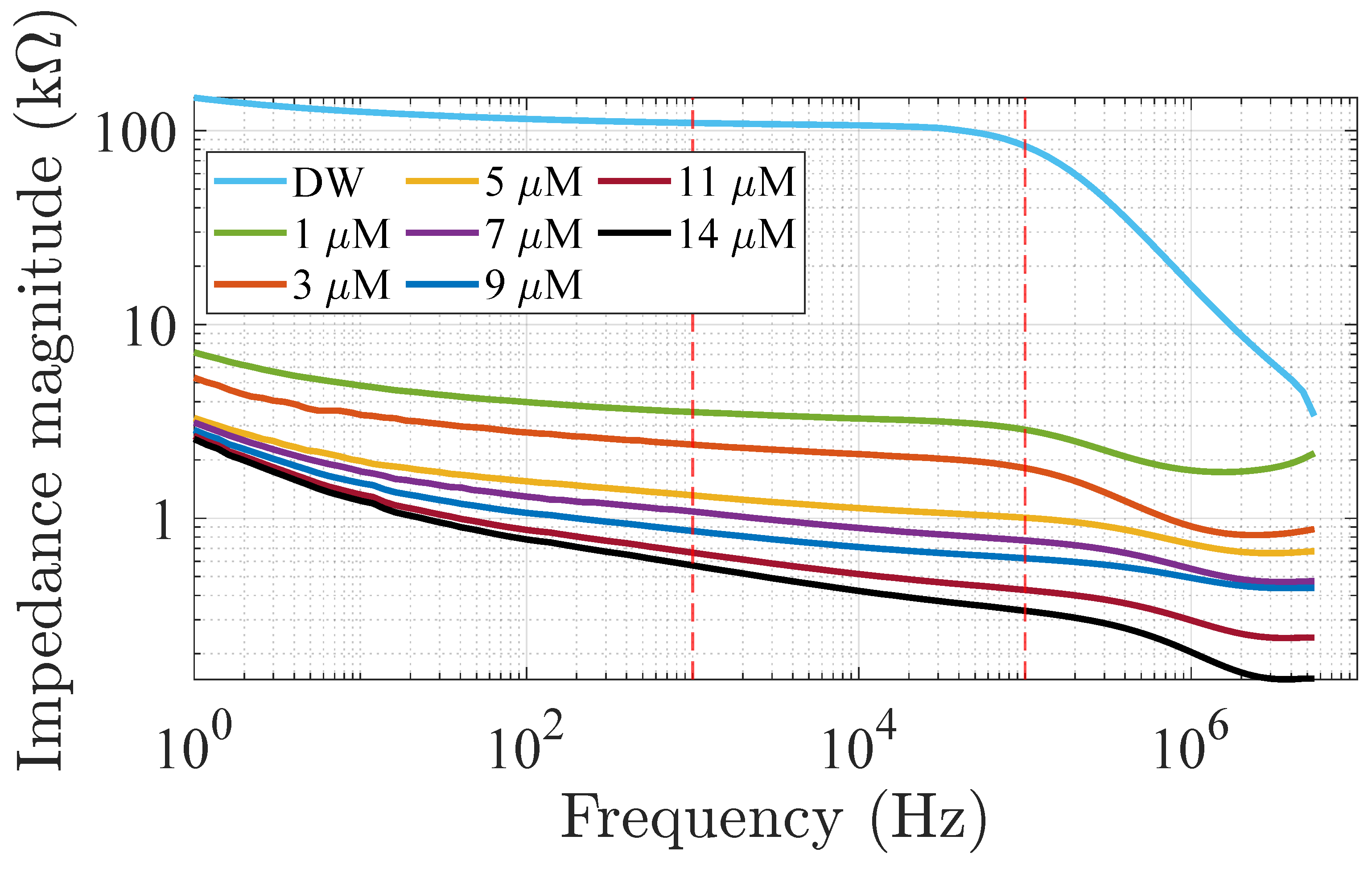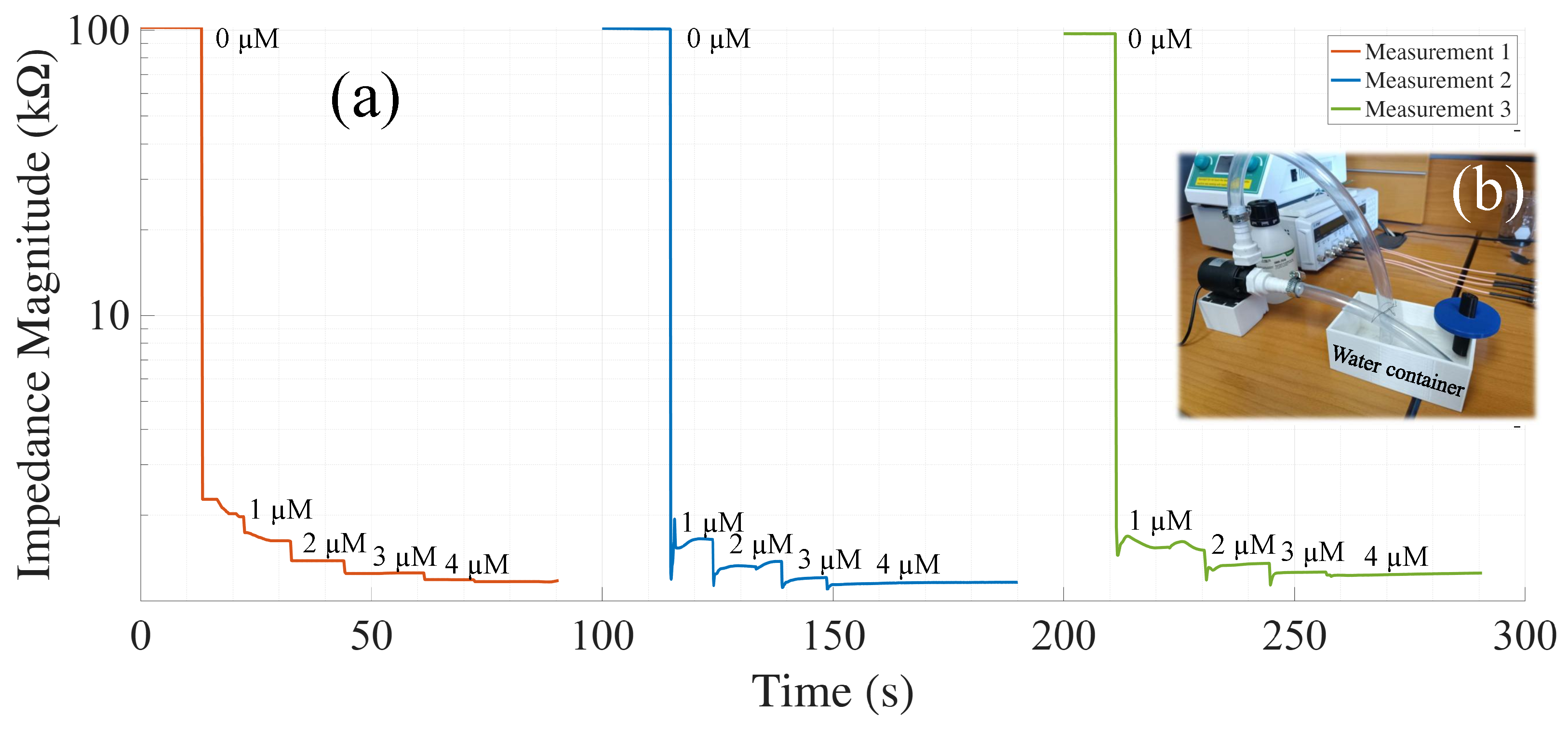 - Kumar, S.K.N.; Aliyana, A.K.; Baburaj, A.; Adetunji, M.; Fernandez, R.E. Impedance Sensor for Real-Time Ammonium Detection Based on MWCNT/ZnO Nanocomposites. IEEE Trans. NanoBiosci. 2023, 22, 121–127. [Google Scholar] [CrossRef]