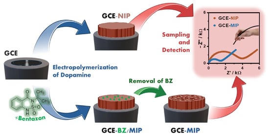 - Córdoba-Aceituno, M.; Cuesta-Chamorro, C.M.; Sánchez-Obrero, G.; Madueño, R.; Blázquez, M.; Pineda, T.; Del Caño, R. Polydopamine as a molecularly imprinted polymer (MIP) for the detection of Bentazon. Electrochim. Acta 2025, 454, 146679. [Google Scholar] [CrossRef]