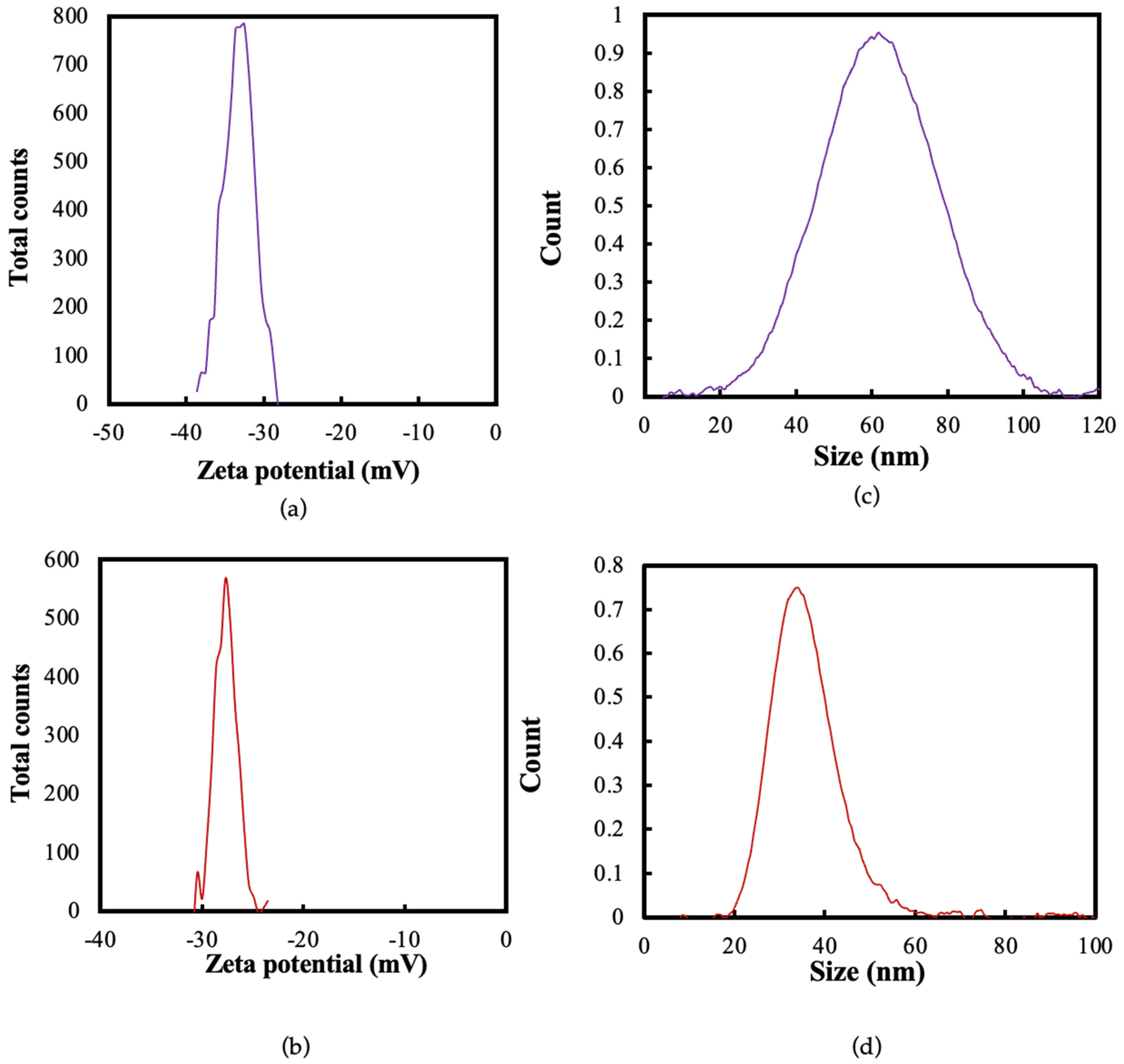 3.1.3. Zeta Potential and Particle Size Distribution