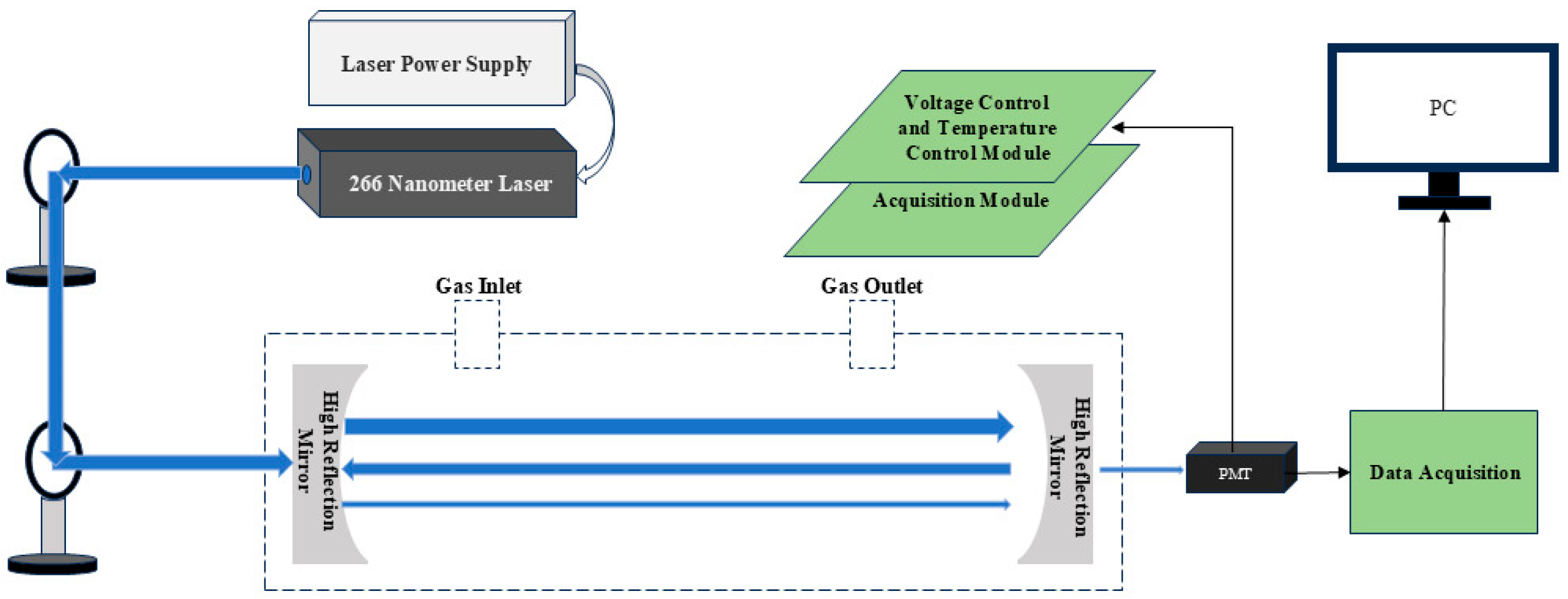 - Li, J.; Guo, B.; Sun, X.; Wang, K.; Yang, H. Current Pulse Width Modulation-Cavity Ring down Spectroscopy for Simultaneous Measurement of Carbon Dioxide and Methane. Sens. Actuators B Chem. 2025, 444, 138457. [Google Scholar] [CrossRef]