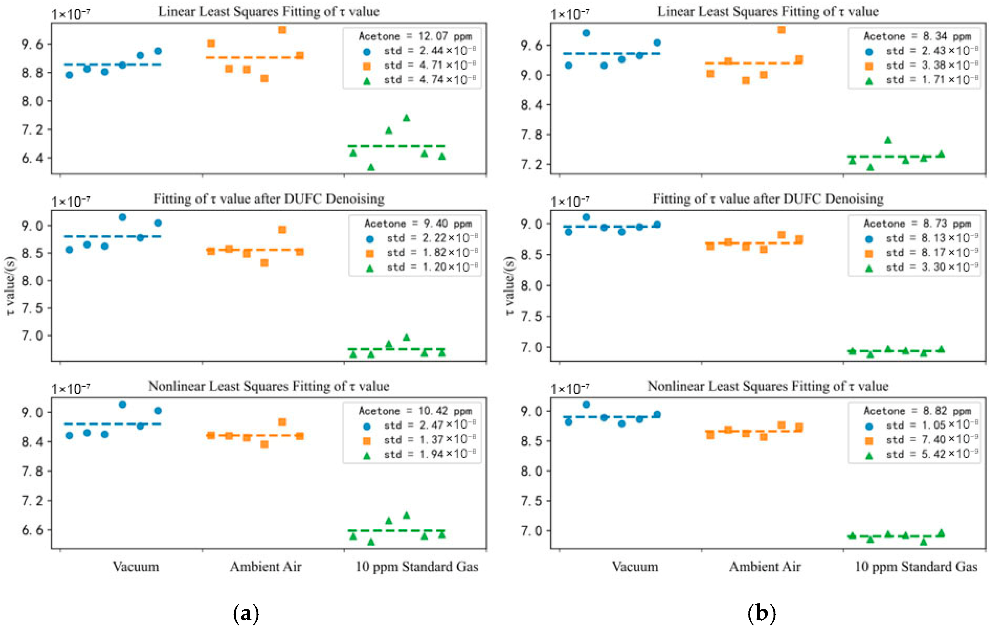 - Wang, D.; Hu, R.-Z.; Xie, P.-H.; Qin, M.; Ling, L.-Y.; Duan, J. Fast and Accurate Extraction of Ring-Down Time in Cavity Ring-Down Spectroscopy. Spectrosc. Spect. Anal. 2014, 34, 2845–2850. [Google Scholar]