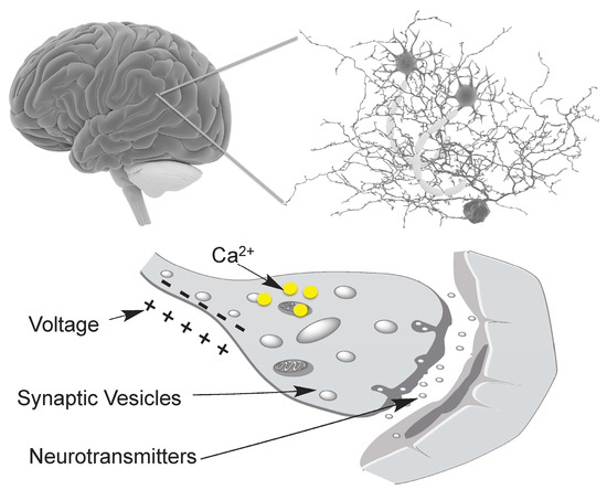 - Sudhof, T.C. Neurotransmitter release: The last millisecond in the life of a synaptic vesicle. Neuron 2013, 80, 675–690. [Google Scholar] [CrossRef] [PubMed]