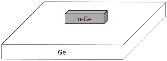 Depiction of the model used for the finite difference time domain (FDTD) calculations. Here, a phosphorous doped, n-type germanium (n-Ge) rectangular particle on top of a germanium (Ge) substrate is shown.