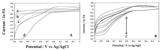 Figure 6A displays the cyclic voltammetry (CV) obtained at the pristine SWCNTs/GCE (a), only MnO2/GCE (b), unzipped SWCNTs/GCE (c), and MnO2/unzipped SWCNTs/GCE (d) in 0.1 M PBS (pH 7.4) containing 1.0 mM H2O2, at a scan rate of 100 mVs−1. The observed electrocatalytic ability of these different electrodes towards oxidation of H2O2 has shown following order: MnO2/unzipped SWCNTs/GCE > unzipped SWCNTs/GCE > MnO2/GCE > Mn pristine SWCNTs/GCE.