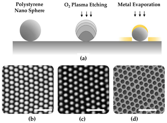 - Colson, P.; Henrist, C.; Cloots, R. Nanosphere lithography: A powerful method for the controlled manufacturing of nanomaterials. J. Nanomater. 2013, 2013, 948510. [Google Scholar] [CrossRef]
